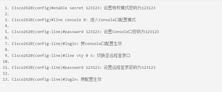 键入config terminal,出现提示符Cisco2620(config)#,进入配置模式。